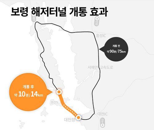 대천~안면도 이동시간을 90분 → 10~15분으로 단축. 원산도에 상수도 공급도 가능해짐